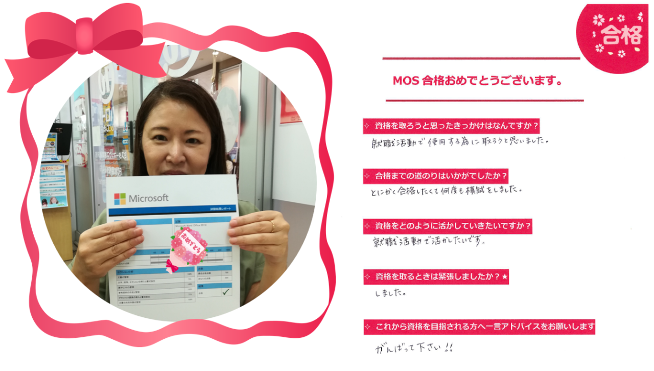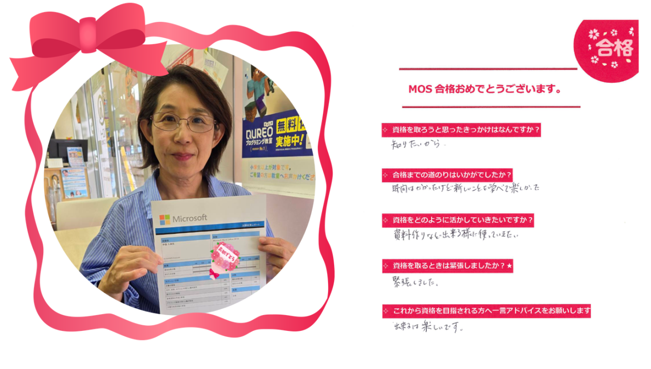 - 藤沢のパソコン教室・ハロー!パソコン教室 ミスターマックス湘南藤沢校のお客様の声